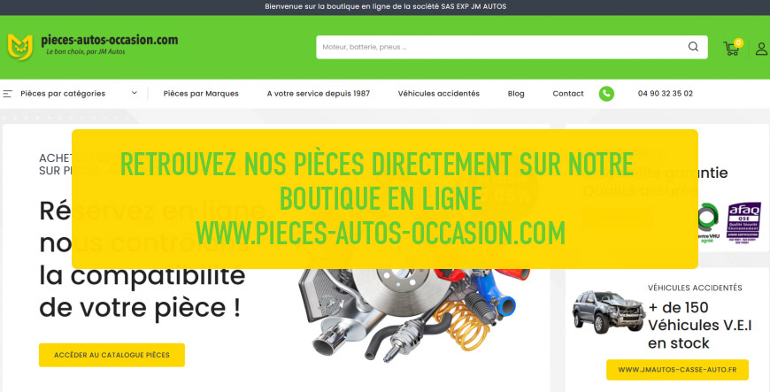 JMAutos Casse Auto est votre partenaire de confiance pour tous vos besoins en pièces détachées automobiles à Avignon. Avec un magasin de plus de 1000 m² et une garantie de 3 mois sur nos pièces, nous vous offrons qualité, espace et sérénité. Visitez-nous dès aujourd'hui et découvrez la qualité et le service qui nous distinguent !